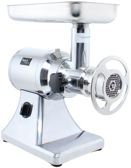 Мясорубка Apach Cook Line ATS22UT/SS предназначена для измельчения мяса и рыбы в фарш, измельчения котлетной массы и набивки колбас на предприятиях общественного питания и торговли. Модель оснащена усиленным редуктором и вентилируемым асинхронным двигателем с защитой от перегрузок. Ножи, решетки, лоток, горловина и мясорубочная часть выполнены из нержавеющей стали.
