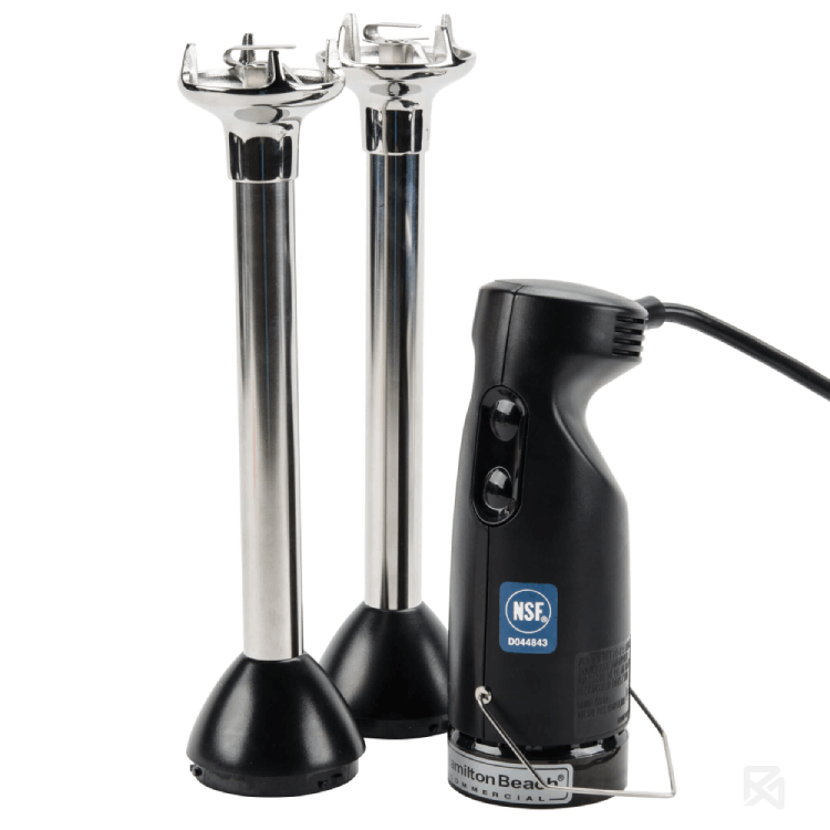 Ручной блендер-гомогенизатор ручной Hamilton Beach HMI200 предназначен для измельчения, нарезки, перемешивания продуктов и приготовления овощного пюре, суфле и соусов, а также взбивания жидкого теста, сливок и кремов в кафе, барах, на предприятиях фаст-фуда и в домашних условиях. С помощью этой модели коктейль "Дайкири" (0,5 л) можно приготовить за 20 секунд. Ручка выполнена из небьющегося пластика ABS, вал - из нержавеющей стали.