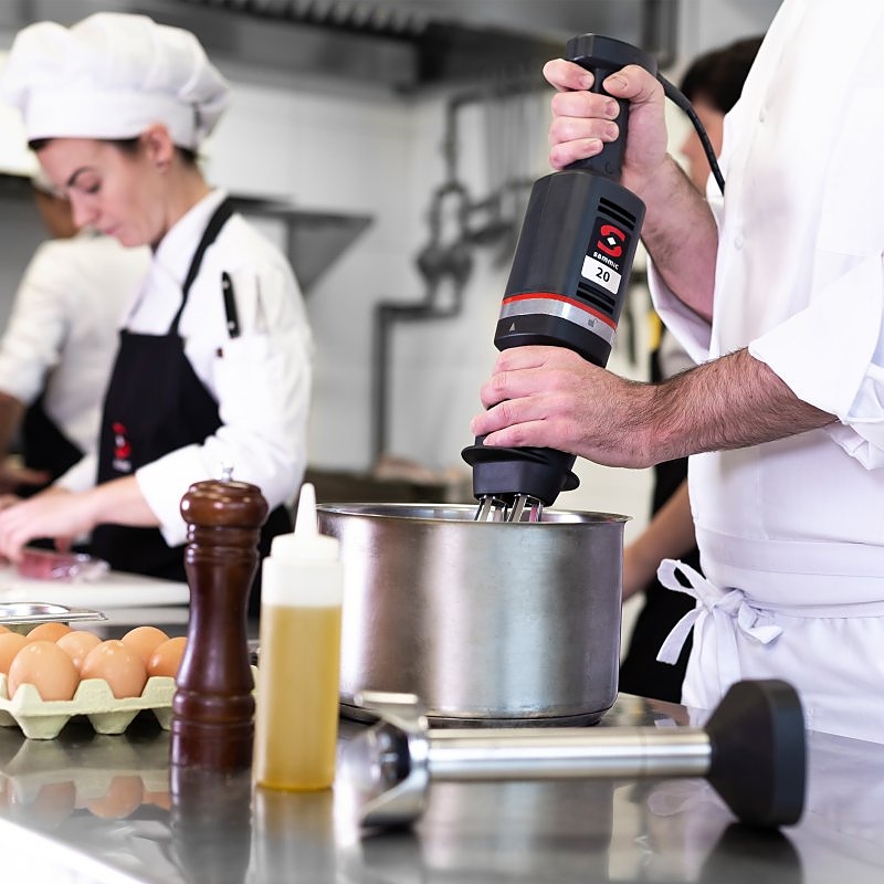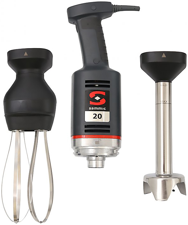 Ручной миксер Sammic MB-21 используется на предприятиях общественного питания, торговли и пищевых производствах для взбивания, смешивания и измельчения продуктов питания. Модель оснащена плавным регулятором скорости, защитой от брызг и эргономичной ручкой. Материал Y-образного ножа - закаленная сталь.