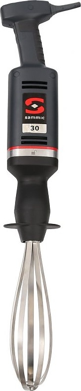 Ручной миксер Sammic B-30 используется на предприятиях общественного питания, торговли, пищевых производствах и в домашних условиях для взбивания, смешивания и измельчения продуктов питания. Модель оснащена световым индикатором, безступенчатой регулировкой скорости, козырьком для защиты от брызг и эргономичной ручкой. Материал корпуса - покрытие из полимера черного цвета с матовой противоскользящей поверхностью, материал венчика - высококачественная нержавеющая сталь.