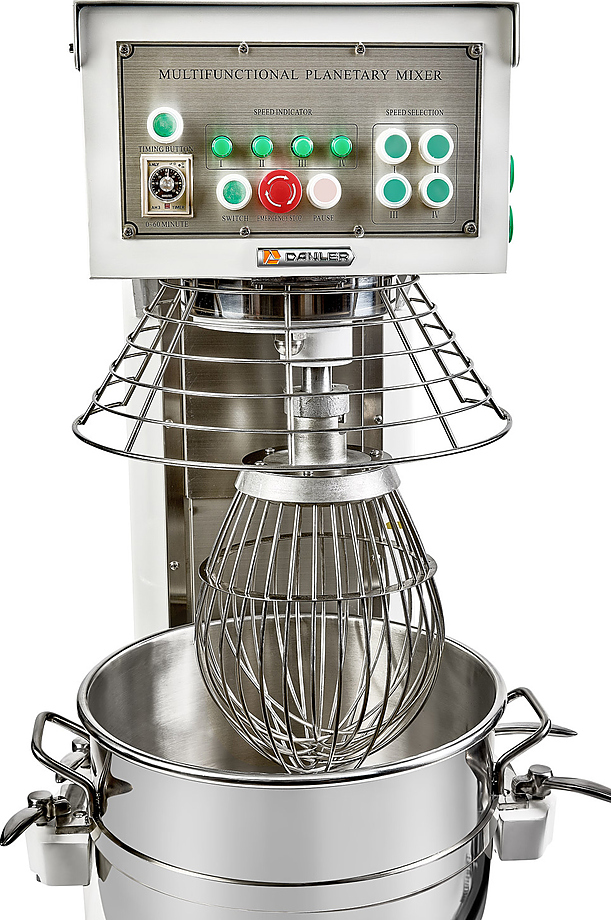 Планетарный миксер Danler MS-100 предназначен для замеса различного вида теста жидкой консистенции, в том числе белкового, заварного, дрожжевого, бисквитного, а также для приготовления пюре, майонеза, различных соусов, взбитых сливок в пекарнях, кондитерских, на предприятиях общественного питания и торговли.