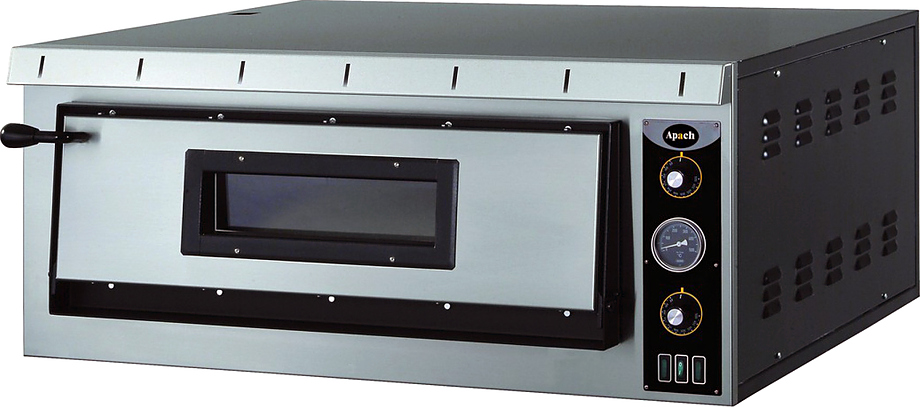 Печь для пиццы Apach AML6 серии "Large" используется на предприятиях общественного питания и торговли. Модель оснащена механической системой управления и 6 нагревательными элементами: 3 сверху и 3 снизу камеры. Лицевая панель выполнена из нержавеющей стали, боковые и задние панели - из окрашенной стали, рабочая камера - из стали с алюминиевым покрытием, под - из огнеупорного материала сертифицированного для пищевых продуктов.