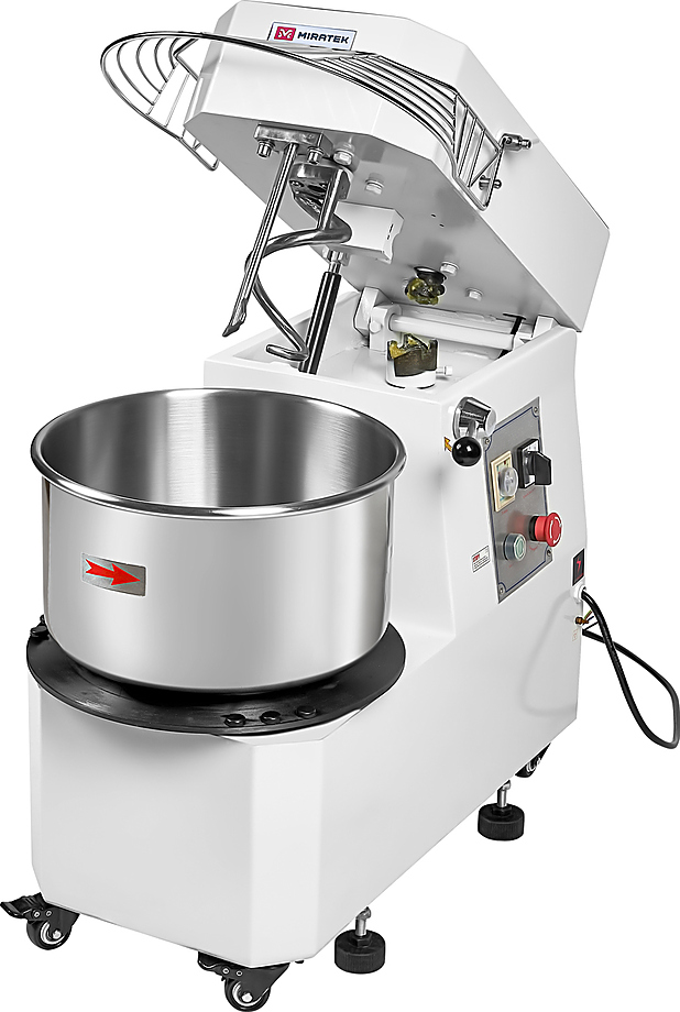 Спиральный тестомес Miratek PRS-20 используется в пекарнях, кондитерских, на предприятиях общественного питания и торговли для замешивания теста с различной основой и консистенцией для выпечки большого ассортимента хлебобулочной продукции из пшеничного, ржаного и ржано-пшеничного теста.