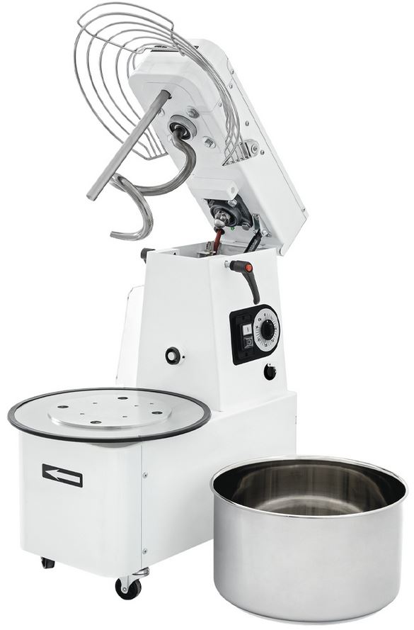 Спиральный тестомес Prismafood ITR 30 2V "EVO" предназначается для замеса слоеного, сдобного и дрожжевого теста на предприятиях общественного питания, торговли и пищевых производства. Из теста можно испечь хлеба, булочки, пироги, пиццы, лепешки и другие хлебобулочные изделия. Тестомес имеет в своей конструкции дежу, спиралевидный месильный орган, тесторазделительный стержень, крышку, колеса, приводной механизм и крюк из нержавеющей стали. Модель оснащена таймером, крышка оборудована предохранительным выключателем. Управление при помощи кнопочной панели. Материал корпуса - окрашенная сталь.