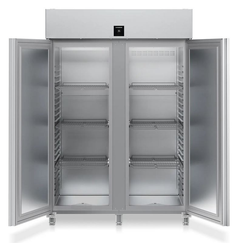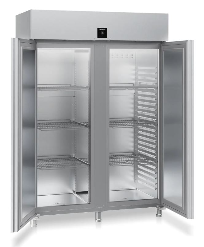 Холодильный шкаф Liebherr FRPSVG 1402 предназначен для охлаждения и кратковременного хранения скоропортящихся продуктов и напитков на предприятиях общественного питания и торговли. Модель оснащена электронным управлением, индикацией температуры, блокировкой дисплея, светодиодным освещением, автоматическим размораживанием, самозакрывающимися дверьми, механическим замком, сигналом об неисправности, встроенной эргономичной ручкой, дренажем в нижней части и 5 регулируемыми ножками. Материал изделия - высококачественная нержавеющая сталь AISI 304, материал полок - стальная решетка с пластмассовым покрытием.