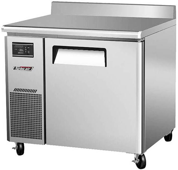 Холодильный стол Turbo air KWR9-1 предназначен для раскатки теста, обработки, охлаждения и кратковременного хранения продуктов и напитков на предприятиях общественного питания и торговли. Корпус выполнен из нержавеющей стали (гальванизированная сталь на оборотной стороне и внизу) с применением пожаробезопасных стенок толщиной 60 мм, уплотнения - из АБС-пластика (акрилонитрилбутадиенстирола), не пропускающего конденсата, пол - из нержавеющей стали с алюминиевыми вставками по бокам и сзади оборудования, регулируемые полки - из толстой стальной проволоки с виниловым покрытием.