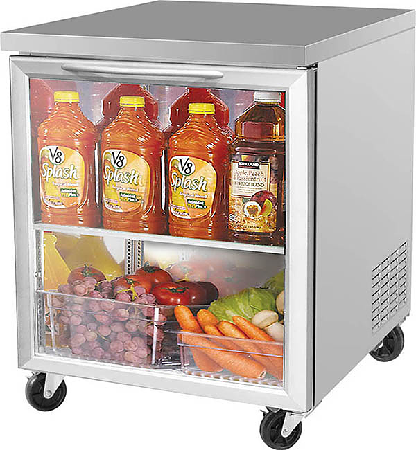 Холодильный стол Turbo air CMUR-28-G используется на предприятиях общественного питания, торговли и пищевых производствах для обработки, охлаждения и кратковременного хранения продуктов, а также для раскатки теста. Стол оснащен динамической системой охлаждения и аналоговым управлением. Материал корпуса - нержавеющая сталь (пожаробезопасные стенки 60 мм), материал пола - нержавеющая сталь с алюминиевыми вставками, материал полок - толстая стальная проволока с виниловым покрытием, дверь с двойным стеклопакетом LOW-Е, покрытым теплоотражающей пленкой, уплотнения выполнены из АБС-пластика.