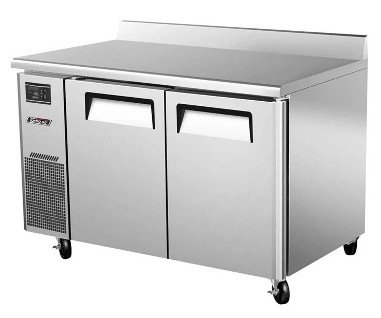 Холодильный стол Turbo air KWR15-2-P-750 используется для охлаждения и хранения пищевых продуктов, а также для обработки ингредиентов на предприятиях общественного питания, торговли и пищевых производствах. Динамическая система охлаждения. Стол установлен на 4 колесах, оснащен 2 дверцами с эргономичными ручками и 20 регулируемыми направляющими под пекарские листы 600x400 мм. Материал корпуса, ножек и направляющих - нержавеющая сталь, материал задней и нижней панелей - гальванизированная сталь, материал пола - нержавеющая сталь с алюминиевыми вставками, материал полок - толстая стальная проволока с виниловым покрытием, материал уплотнения - ABS-пластик.