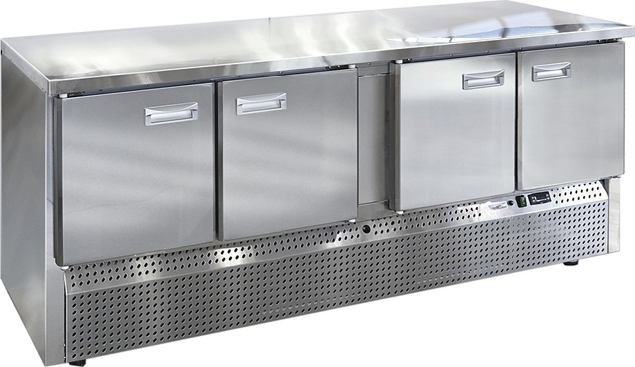 Холодильный стол Finist СХСн-600-4 используется на предприятиях общественного питания, торговли и пищевых производствах для хранения и обработки полуфабрикатов из мяса и рыбы, заготовок для салата, охлажденных напитков и прочих пищевых продуктов. Управление при помощи кнопочной панели управления, оснащенной цифровым дисплеем. 4 камеры с распашными дверцами, агрегатный отсек располагается снизу. Стол установлен на ножки с подпятниками. Материал корпуса - нержавеющая сталь.