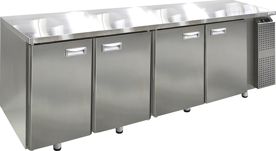 Холодильный стол Finist СХСм-700-4 используется на предприятиях общественного питания, торговли и пищевых производствах для хранения и обработки полуфабрикатов из мяса и рыбы, заготовок для салата, охлажденных напитков и прочих пищевых продуктов. Управление при помощи кнопочной панели управления, оснащенной цифровым дисплеем. 4 камеры с распашными дверцами, агрегатный отсек располагается сбоку. Стол установлен на ножки с подпятниками. Материал корпуса - нержавеющая сталь.