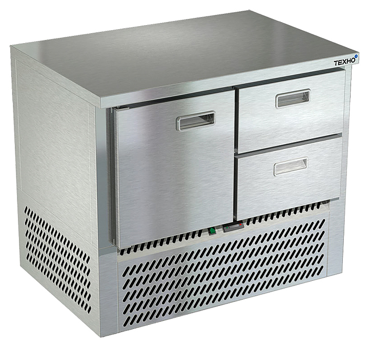 Холодильный стол Техно-ТТ СПН/О-122/12-1407 предназначается для раскатки теста, обработки, охлаждения и кратковременного хранения продуктов и напитков на предприятиях общественного питания, торговли и пищевых производствах. Секции оснащены направляющими и решетчатыми полками, двери и ящики - доводчиками. Материал корпуса и столешницы - нержавеющая сталь AISI 430, материал задней панели и дна - оцинкованная сталь.