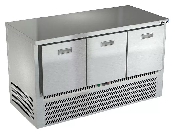 Холодильный стол Техно-ТТ СПН/О-123/03-1406 предназначается для раскатки теста, обработки, охлаждения и кратковременного хранения продуктов и напитков на предприятиях общественного питания, торговли и пищевых производствах. Секции оснащены направляющими и ящиками с доводчиками. Материал корпуса и столешницы - нержавеющая сталь AISI 430, материал задней панели и дна - оцинкованная сталь.