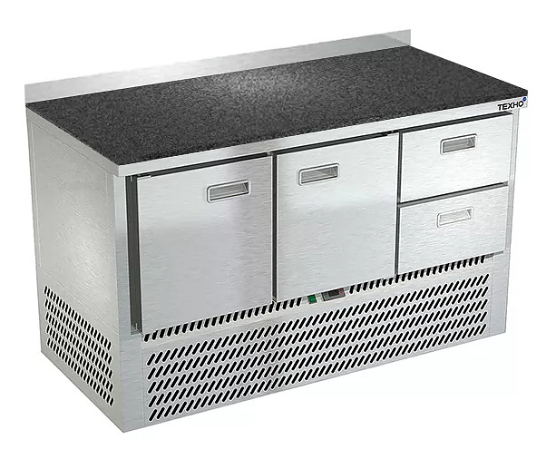 Холодильный стол Техно-ТТ СПН/О-422/22-1406 предназначается для раскатки теста, обработки, охлаждения и кратковременного хранения продуктов и напитков на предприятиях общественного питания, торговли и пищевых производствах. Секции оснащены направляющими и ящиками с доводчиками. Материал корпуса - нержавеющая сталь AISI 430, материал столешницы - гранит (толщина 20 мм), материал задней панели и дна - оцинкованная сталь.