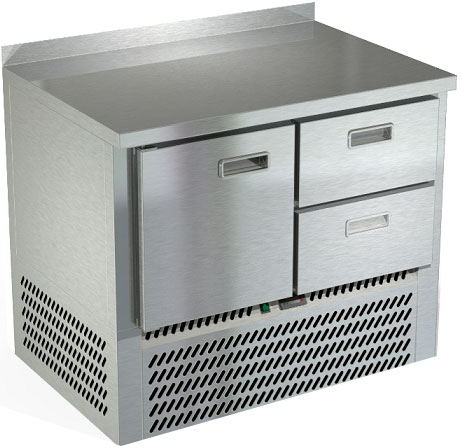 Холодильный стол Техно-ТТ СПН/О-222/22-1406 предназначается для раскатки теста, обработки, охлаждения и кратковременного хранения продуктов и напитков на предприятиях общественного питания, торговли и пищевых производствах. Секции оснащены направляющими и ящиками с доводчиками. Материал корпуса и столешницы - нержавеющая сталь AISI 430, материал задней панели и дна - оцинкованная сталь.