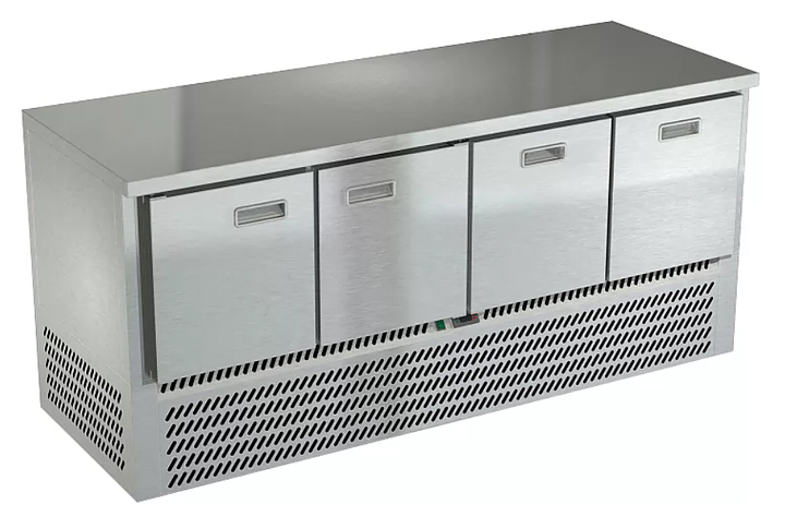 Холодильный стол Техно-ТТ СПН/О-222/22-1906 предназначается для раскатки теста, обработки, охлаждения и кратковременного хранения продуктов и напитков на предприятиях общественного питания, торговли и пищевых производствах. Секции оснащены направляющими и ящиками с доводчиками. Материал корпуса и столешницы - нержавеющая сталь AISI 430, материал задней панели и дна - оцинкованная сталь.