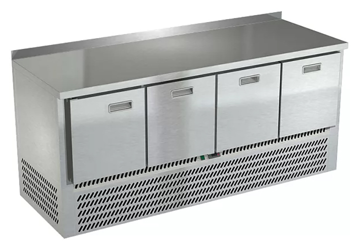 Холодильный стол Техно-ТТ СПН/О-222/13-1906 предназначается для раскатки теста, обработки, охлаждения и кратковременного хранения продуктов и напитков на предприятиях общественного питания, торговли и пищевых производствах. Секции оснащены направляющими и ящиками с доводчиками. Материал корпуса и столешницы - нержавеющая сталь AISI 430, материал задней панели и дна - оцинкованная сталь.