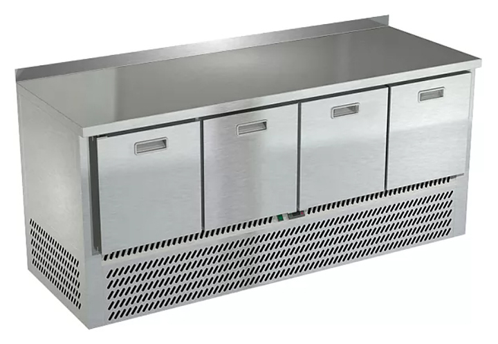 Холодильный стол Техно-ТТ СПН/О-223/04-1906 предназначается для раскатки теста, обработки, охлаждения и кратковременного хранения продуктов и напитков на предприятиях общественного питания, торговли и пищевых производствах. Секции оснащены направляющими и ящиками с доводчиками. Материал корпуса и столешницы - нержавеющая сталь AISI 430, материал задней панели и дна - оцинкованная сталь.