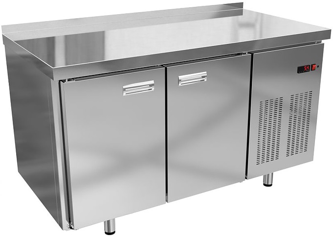 Холодильный стол KRONER СХб 2-140-70 используется для хранения продуктов и обработки ингредиентов на предприятиях общественного питания, торговли и пищевых производствах. Модель оснащена электронным управлением, автоматической оттайкой и регулируемыми ножками. Материал цельнозаливного корпуса, дверей и столешницы - шлифованная высококачественная нержавеющая сталь, материал задней стенки и дна - шлифованная сталь.