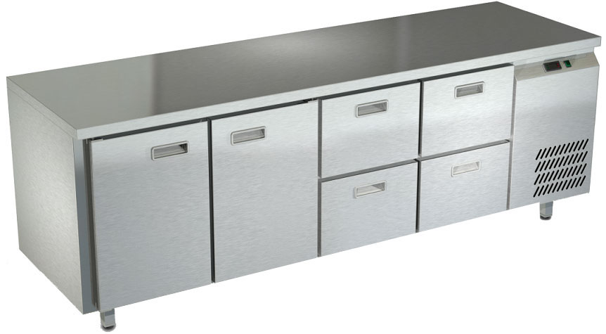 Холодильный стол Техно-ТТ СПБ/О-122/24-2207 предназначен для раскатки теста, обработки, охлаждения и кратковременного хранения продуктов и напитков на предприятиях общественного питания и торговли. Модель оснащена компрессором АСС (Италия), каждая секция - направляющими и сетчатой полкой, двери и ящики - доводчиками. Корпус выполнен из нержавеющей стали, задняя стенка - из оцинкованной стали.
