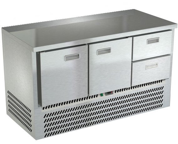 Холодильный стол Техно-ТТ СПН/О-122/22-1407 предназначен для раскатки теста, обработки, охлаждения и кратковременного хранения продуктов и напитков на предприятиях общественного питания и торговли. Модель оснащена компрессором АСС (Италия), секции - направляющими и сетчатыми полками, двери и ящики - доводчиками. Корпус выполнен из нержавеющей стали, задняя стенка - из оцинкованной стали.