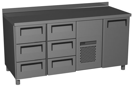 Холодильный стол Сarboma T70 M3-1 0430 (3GN/NT 313) предназначен для раскатки теста, обработки ингредиентов для приготовления блюд, охлаждения и кратковременного хранения скоропортящихся продуктов и напитков на предприятиях общественного питания и торговли. Модель оснащена 3 полками, 6 расположенными по краям ящиками и регулируемыми ножками высотой от 90 до 110 мм. Цельнозаливной корпус выполнен из нержавеющей стали с теплоизоляцией из пенополиуретана, дверцы - из металла.