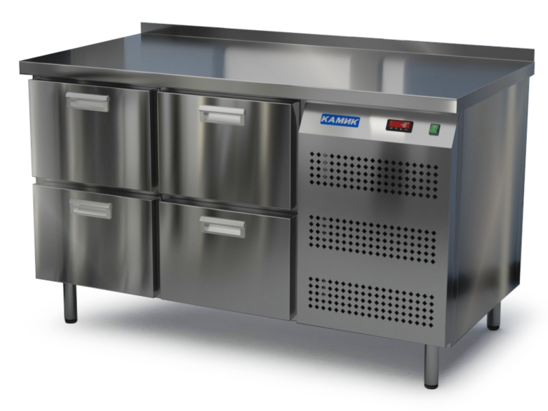 Холодильный стол КАМИК СО-Т-04147 используется на предприятиях общественного питания и торговли для охлаждения и хранения продуктов, напитков и готовых блюд, а также для установки теплового оборудования на него. Конструкция разделена на секции, каждая из которых оборудована сетчатой полкой и парой направляющих. Корпус выполнен из нержавеющей стали.