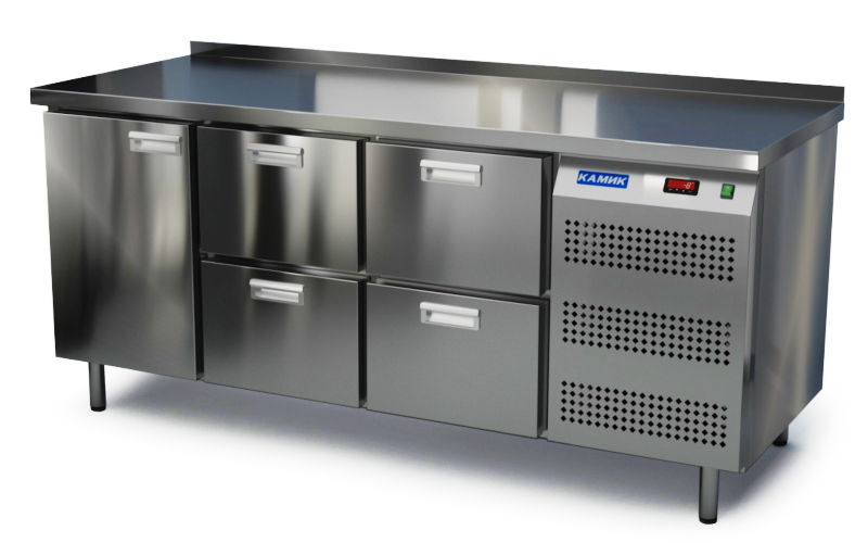 Холодильный стол КАМИК СО-Т-141857 используется на предприятиях общественного питания и торговли для охлаждения и хранения продуктов, напитков и готовых блюд, а также для установки теплового оборудования на него. Конструкция разделена на секции, каждая из которых оборудована сетчатой полкой и парой направляющих. Корпус выполнен из нержавеющей стали.