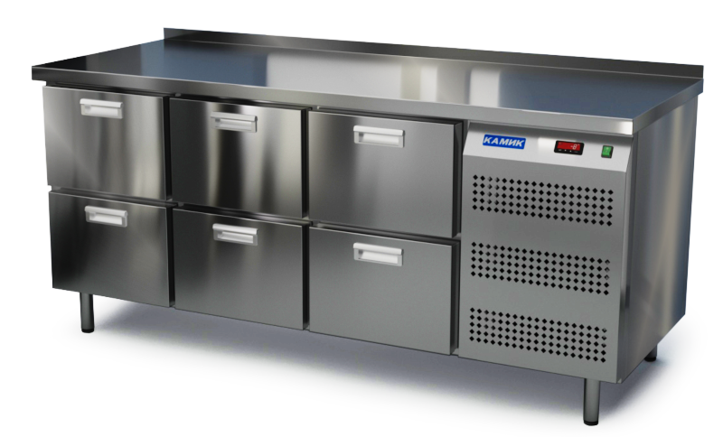 Холодильный стол КАМИК СО-Т-061856 используется на предприятиях общественного питания и торговли для охлаждения и хранения продуктов, напитков и готовых блюд, а также для установки теплового оборудования на него. Конструкция разделена на секции, каждая из которых оборудована сетчатой полкой и парой направляющих. Корпус выполнен из нержавеющей стали.