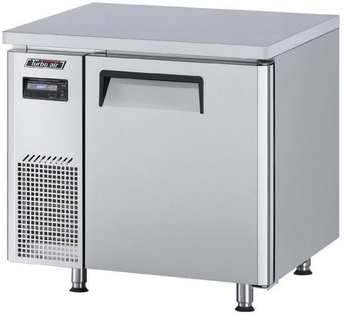 Холодильный стол Turbo air KUR9-1 состоит из рабочей поверхности, на которой можно раскатывать тесто и обрабатывать ингредиенты для приготовления блюд, и камеры, предназначенной для охлаждения и кратковременного хранения скоропортящихся продуктов и напитков на предприятиях пищевой промышленности, общественного питания и торговли. Корпус выполнен из нержавеющей стали с применением полиуретановой теплоизоляции высокой плотности и уплотнения из теплоэффективного АБС-пластика (акрилонитрилбутадиенстирола), не пропускающего конденсата, оборотная сторона и низ - из оцинкованной стали, пол - из нержавеющей стали с алюминиевыми вставками по бокам и сзади, регулируемая полка - из толстой проволоки с виниловым покрытием.
