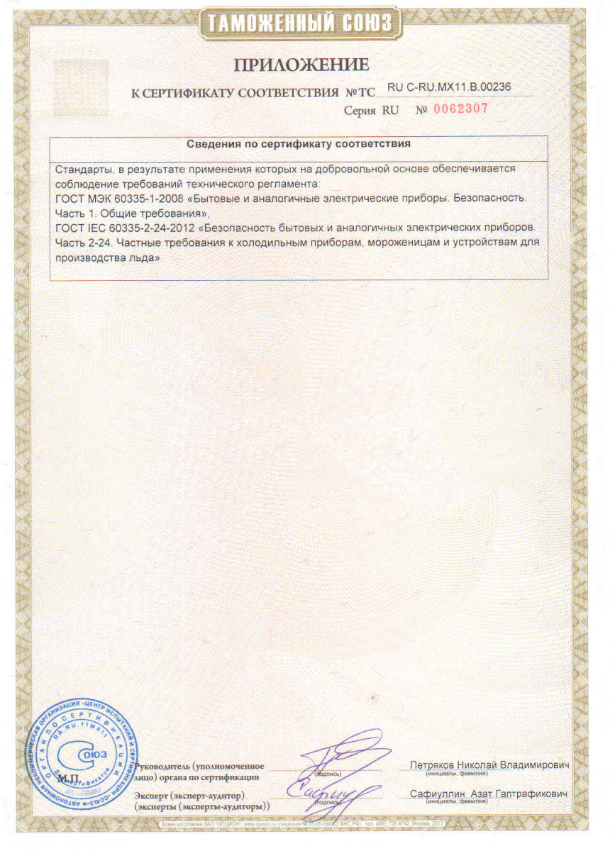 Конструкция и съемная обшивка выполнены из высококачественной нержавеющей стали, контейнер для льда - из пищевого термоформованного пластика, стенки изолированны пенополиуретаном с высокой плотностью. Эксплуатация льдогенератора допускается при температуре окружающей среды от 10 до 35 °C и относительной влажности от 40 до 70%.