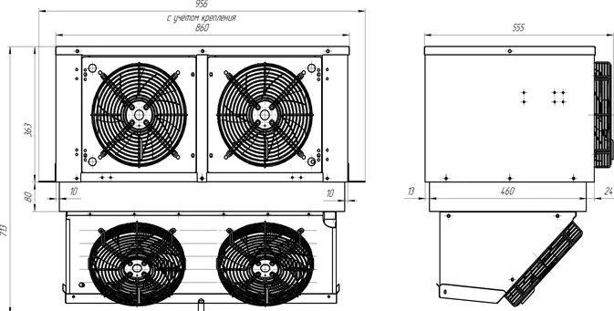 Низкотемпературный моноблок Intercold МLCM-214 FT T используется на предприятиях общественного питания, торговли и пищевых производствах для поддержания температурного режима в холодильных камерах. Оборудование оснащено внешним блоком с установленным компрессором, автоматической оттайкой, пластинчато-трубчатым конденсатором, щитом управления с контроллером и силовой частью. Материал корпуса - крашенная оцинкованная сталь, материал воздухоохладителя - алюминий.