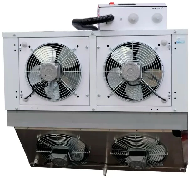 Среднетемпературный моноблок Intercold ММСМ-218 FT T используется на предприятиях общественного питания, торговли и пищевых производствах для поддержания температурного режима в холодильных камерах. Оборудование оснащено внешним блоком с установленным компрессором, автоматической оттайкой, пластинчато-трубчатым конденсатором, щитом управления с контроллером и силовой частью. Материал корпуса - крашенная оцинкованная сталь, материал воздухоохладителя - алюминий.