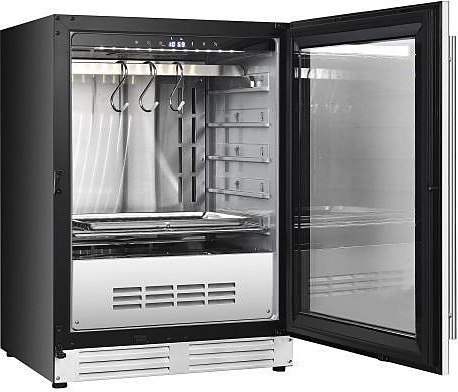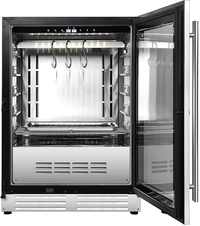 Шкаф для мяса MeatAge VI60 WT предназначается для охлаждения и вызревания мяса, ветчины и салями на предприятиях общественного питания и торговли, пищевых производствах, отелях, офисах, а также в домашнем использовании. Шкаф оснащен белой LED подсветкой внутреннего объема, тачпадом с подсветкой, акустической сигнализацией и запираемой дверью. Материал корпуса и комплектующих - нержавеющая сталь AISI 304, материал двери - ударопрочное закаленное стекло.