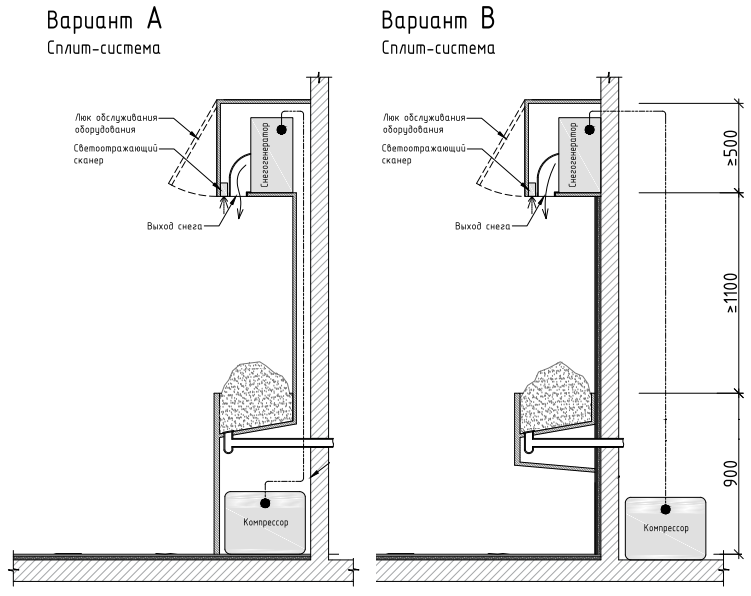 Раздельный снегогенератор R-Snow SPLIT-XL ES600-1S используется для производства снега и нашёл своё применение в банях и СПА. Оборудование из 2х частей - снежного барабана и компрессора с блоком управления.