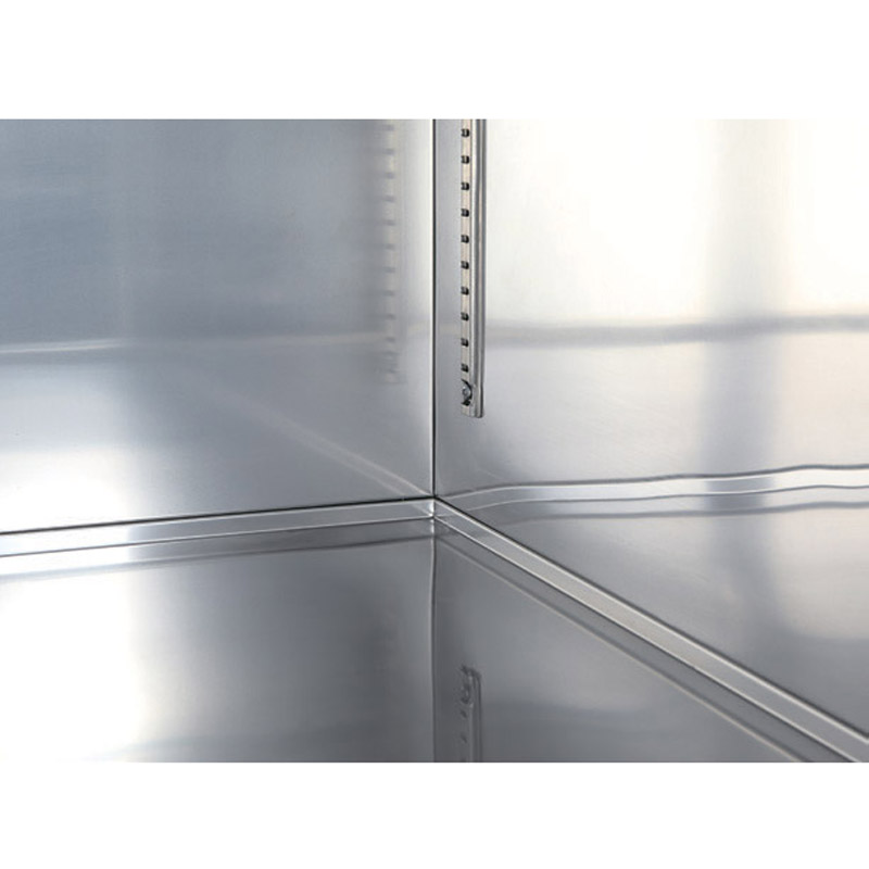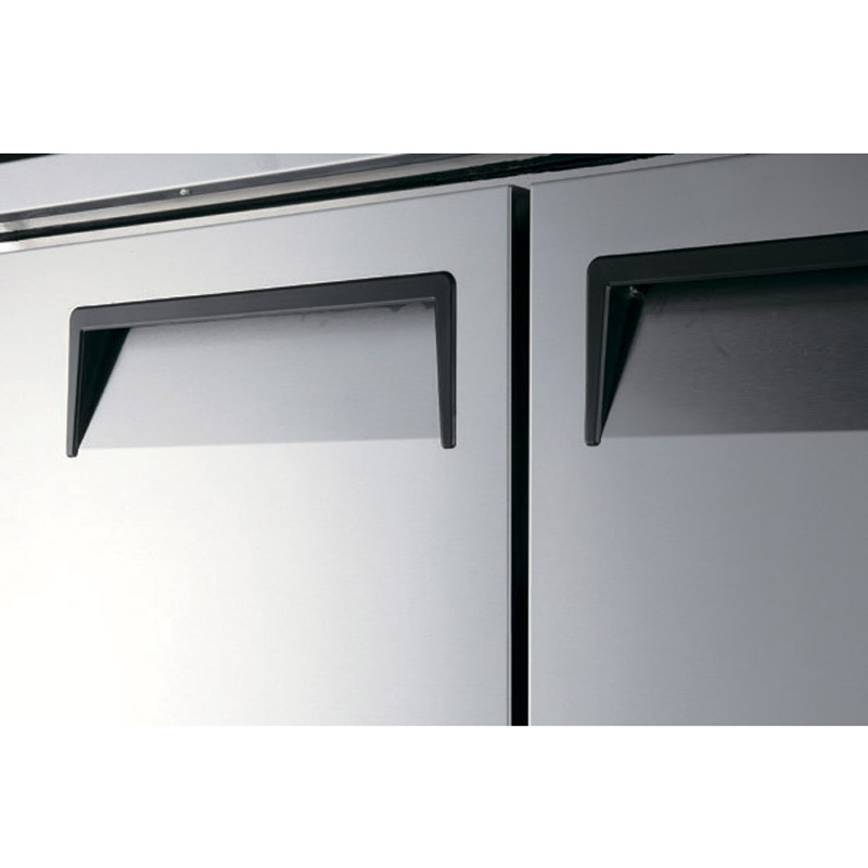 Холодильно-морозильный стол Turbo air KURF12-2 состоит из рабочей поверхности, на которой можно раскатывать тесто и обрабатывать ингредиенты для приготовления блюд, и камеры, предназначенной для заморозки, охлаждения и хранения продуктов, полуфабрикатов, мороженого и напитков на предприятиях пищевой промышленности, общественного питания и торговли. Корпус выполнен из нержавеющей стали с применением пожаробезопасных стенок толщиной 60 мм и уплотнения из теплоэффективного АБС-пластика (акрилонитрилбутадиенстирола), не пропускающего конденсата, оборотная сторона и низ - из гальванизированной стали, пол - из нержавеющей стали с алюминиевыми вставками по бокам и сзади, регулируемые полки - из толстой стальной проволоки с виниловым покрытием, 4 регулируемые ножки - из нержавеющей стали.