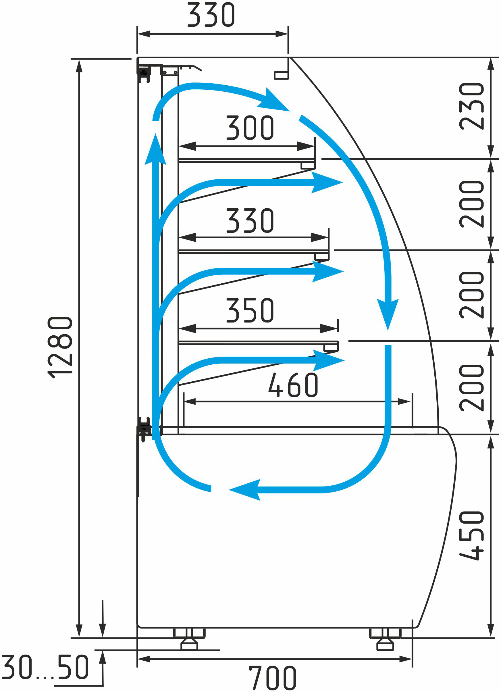 • Макс. высота выкладки продуктов: 150 мм