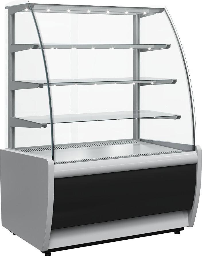 Нейтральная витрина Carboma K70 N 0,9-1 (Техно) используется на предприятиях общественного питания и торговли для демонстрации и кратковременного хранения продукции, не требующей определенного температурного режима. Модель оснащена изогнутым фронтальным и прямыми боковыми стеклами, 3 фиксированными полками и регулируемыми ножками высотой от 20 до 35 мм. Основание и декоративные панели выполнены из стали, боковины - из пластика с пенополиуретановой теплоизоляцией, раздвижные задние створки - из оргстекла.