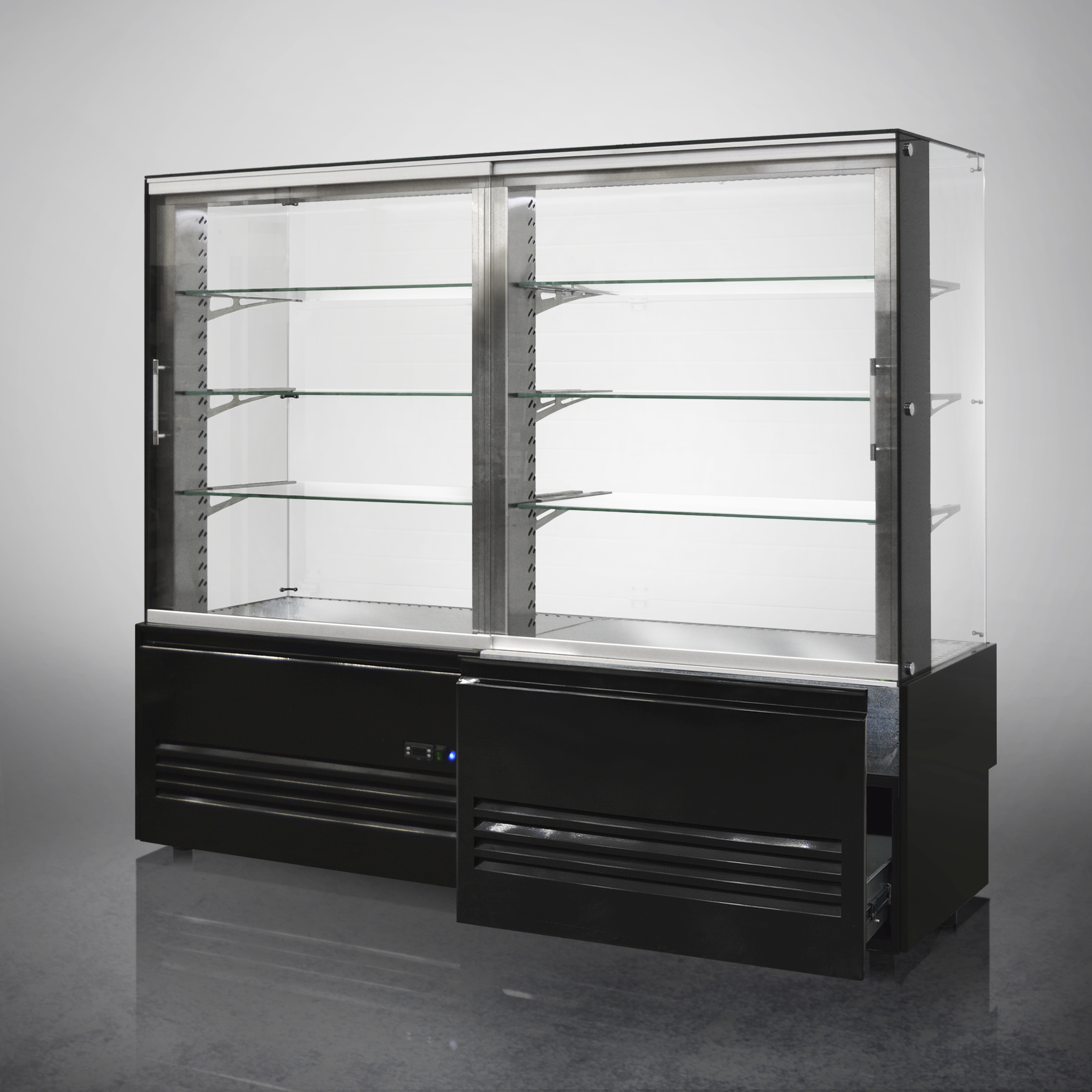 Удвоенная холодильная витрина Finist AIR LUX ADL-160-6-163 используется для демонстрационной выкладки, охлаждения и хранения кондитерских и хлебобулочных изделий на предприятиях общественного питания и торговли. Модель оснащена микропроцессорным блоком, автоматической оттайкой, светодиодной подсветкой каждой полки, 3 стеклянными полками, дополнительным местом для хранения инвентаря и удобными дверцами купе. Материал фронтальных и боковых панелей облицовки - МДФ панели, материал купола и полок - просветленное стекло, материал дна - зеркальная нержавеющая сталь.