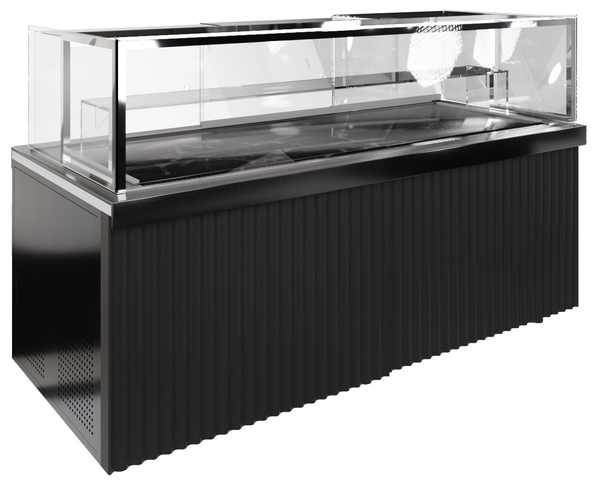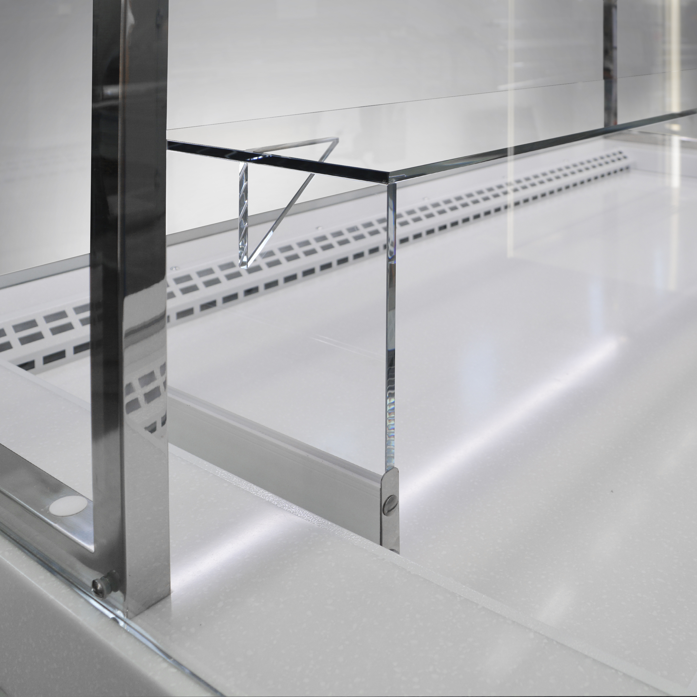 Витрина кондитерская Finist Maria Msv-18-9 используется для демонстрационной выкладки, охлаждения и хранения кондитерских и хлебобулочных изделий на предприятиях общественного питания и торговли. Модель оснащена микропроцессорным блоком, автоматической оттайкой, охлаждаемой камерой, выдвижной полкой, подсветкой и дверьми-купе. Материал фронтальных и боковых панелей облицовки - МДФ панели, материал купола и полок - просветленное стекло, материал зоны выкладки и столешницы - искусственный камень.