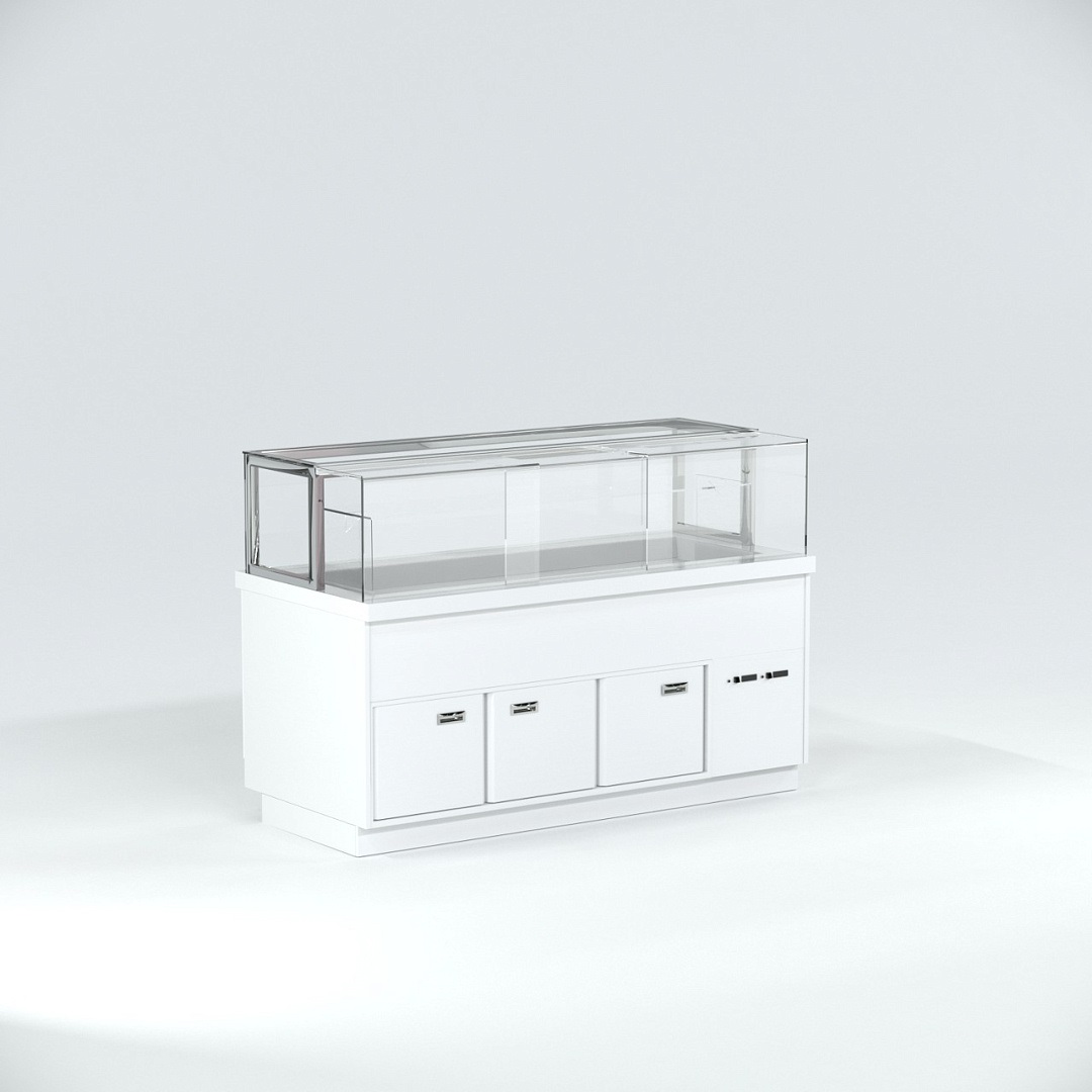 Витрина кондитерская Finist Maria Msv-20-9 используется для демонстрационной выкладки, охлаждения и хранения кондитерских и хлебобулочных изделий на предприятиях общественного питания и торговли. Модель оснащена микропроцессорным блоком, автоматической оттайкой, охлаждаемой камерой, выдвижной полкой, подсветкой и дверьми-купе. Материал фронтальных и боковых панелей облицовки - МДФ панели, материал купола и полок - просветленное стекло, материал зоны выкладки и столешницы - искусственный камень.