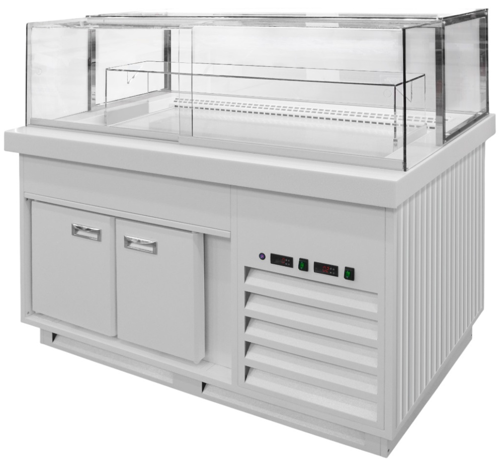 Витрина кондитерская Finist Maria Msv-21-9 используется для демонстрационной выкладки, охлаждения и хранения кондитерских и хлебобулочных изделий на предприятиях общественного питания и торговли. Модель оснащена микропроцессорным блоком, автоматической оттайкой, охлаждаемой камерой, выдвижной полкой, подсветкой и дверьми-купе. Материал фронтальных и боковых панелей облицовки - МДФ панели, материал купола и полок - просветленное стекло, материал зоны выкладки и столешницы - искусственный камень.
