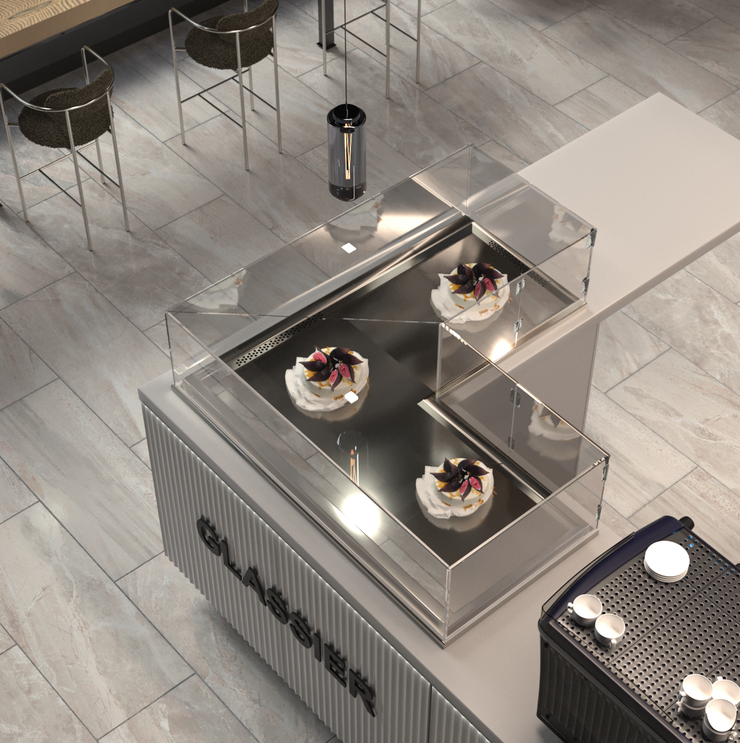 Угловая витрина Finist Glassier LUX GСL-14/6/3 используется на предприятиях общественного питания, торговли и пищевых производствах для демонстрации и кратковременного хранения кондитерских изделий, десертов и сэндвичей. Модель оснащена микропроцессорным блоком управления, автоматической оттайкой, светодиодной подсветкой, цоколем, выдвижными поддонами и дверцами-купе. Материал поддона - зеркальная нержавеющая сталь, материал купола - просветленное стекло, материал фасада - МДФ панели.