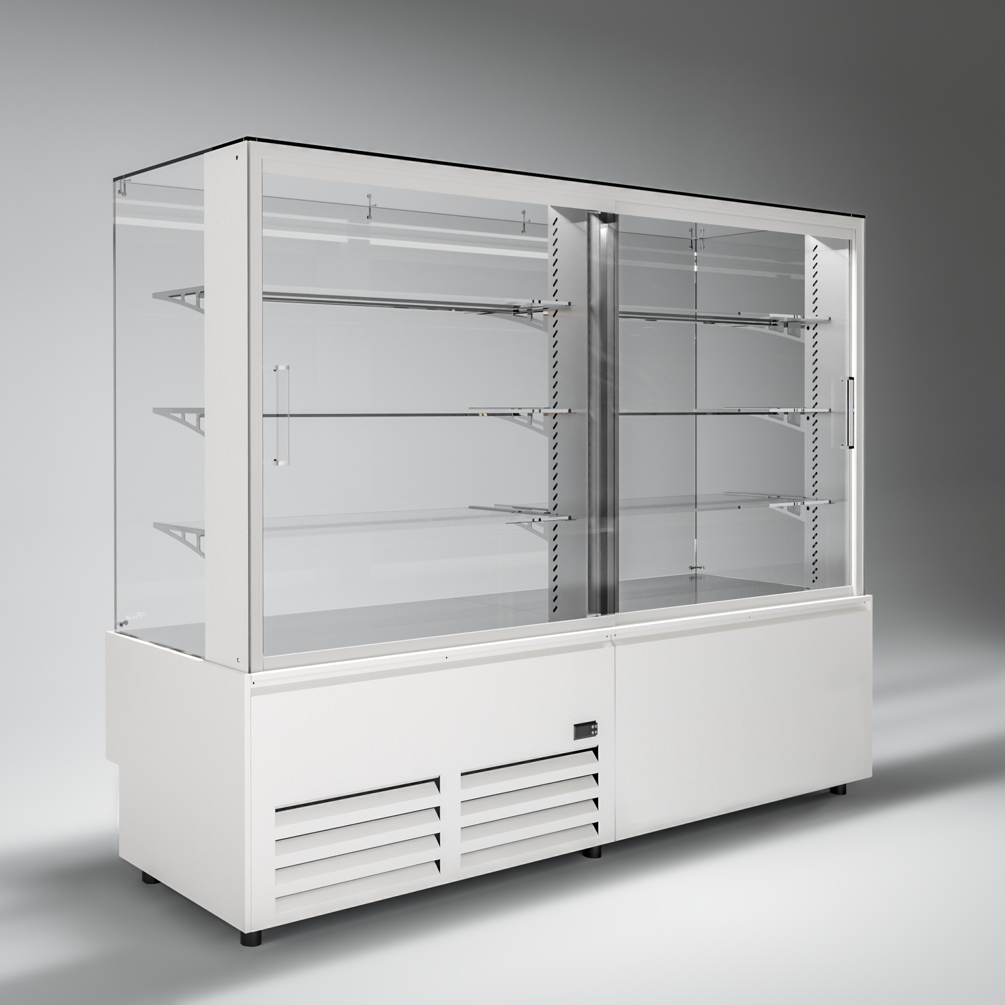 Холодильная витрина Finist AIR DOUBLE AD-160-6-163 используется для демонстрационной выкладки, охлаждения и хранения кондитерских и хлебобулочных изделий на предприятиях общественного питания и торговли. Модель оснащена микропроцессорным блоком, автоматической оттайкой, светодиодной подсветкой каждой полки, 3 стеклянными полками и удобными дверцами купе. Материал цельнозаливного корпуса - окрашенная сталь, материал купола и полок - просветленное стекло, материал дна - зеркальная нержавеющая сталь.