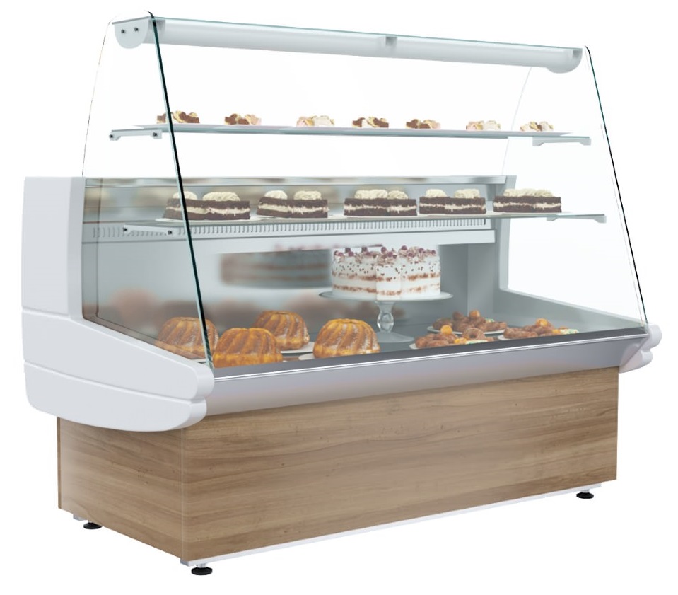 Кондитерская витрина Carboma K85 SM 1,5-1 (ВХСд-1,5 ЭКО) предназначена для демонстрации, охлаждения и кратковременного кондитерских изделий, десертов и сэндвичей на предприятиях общественного питания и торговли. Модель оснащена микропроцессорным блоком управления с индикатором температуры, 2 полками, ночными шторками из органического стекла и регулируемыми ножками высотой от 20 до 35 м. Зона выкладки и столешница выполнены из нержавеющей стали. Корпус имеет пенополиуретановую теплоизоляцию.