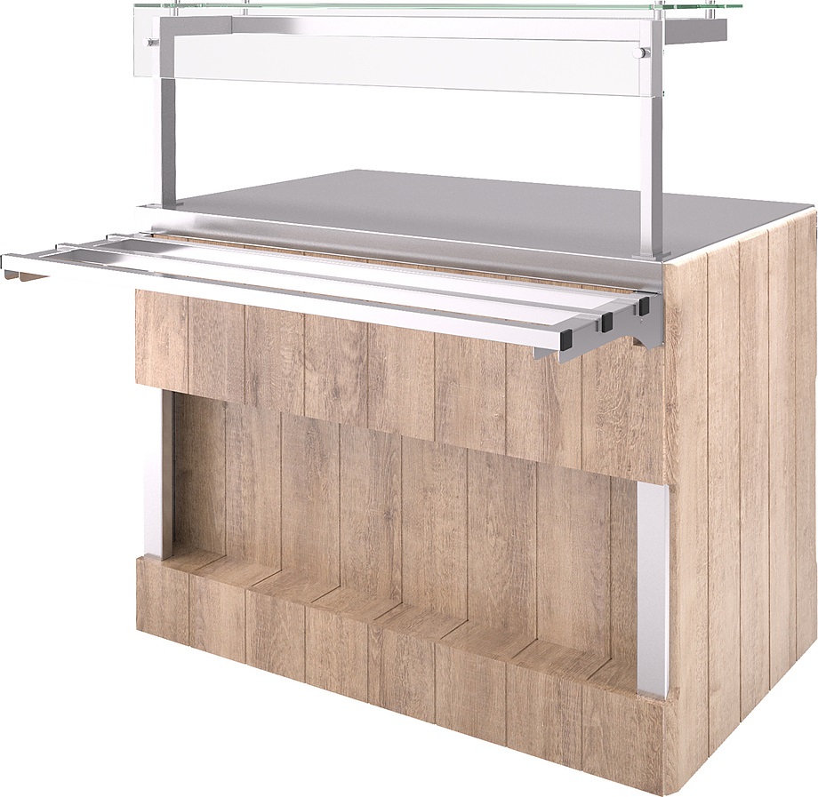 Прилавок нейтральный угловой Refettorio Capital RN10A предназначается для использования в составе линии раздачи Capital для выкладки, демонстрации и предпродажного хранения продуктов, холодных и горячих напитков, установки специализированного оборудования на предприятиях общественного питания и торговли. Углы столешницы проварены, крепежные элементы скрыты, модули столешниц стыкуются без зазоров. Прилавок оснащен нишей для хранения кухонной утвари, располагающейся со стороны рабочего персонала. Материал столешницы - нержавеющая сталь (толщина 1.2 мм), материал фасада - ламинированный МДФ.