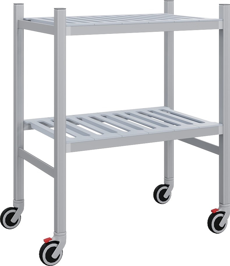 Мобильный cтеллаж-тележка POLAIR LOAD.ME.MOBILE POLY МР11.2.50.08 500х1100х800 мм используется на предприятиях общественного питания, торговли, пищевых производствах, прачечных и прочих сферах для хранения и транспортировки продукции на кухнях, лабораториях, в холодильных и морозильных камерах. Материал каркаса - анодированный алюминиевый профиль, материал полок - полиэтилен ПЭВД.