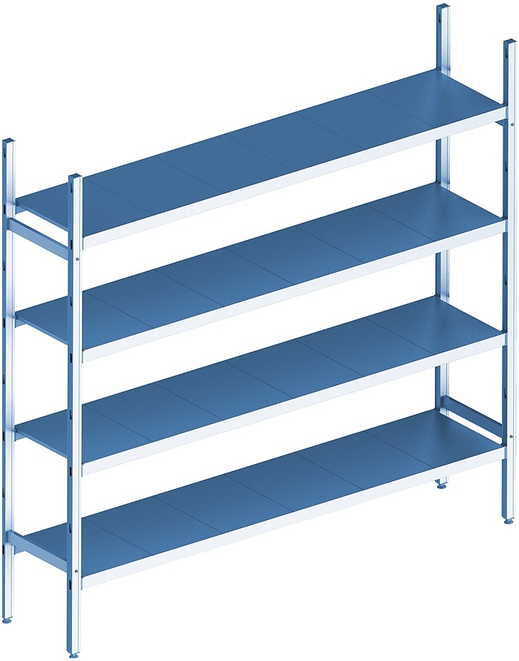 Стеллаж модульный базовый POLAIR LOAD.ME INOX 21AL.4IN50.07B используется на предприятиях общественного питания, торговли, пищевых производствах и складских помещениях. Данная модель может стыковаться с базовой и угловой секцией модульной стеллажной системой. Материал каркаса – анодированный алюминиевый профиль, материал полок – нержавеющая сталь, материал ножек – прочный сплав.