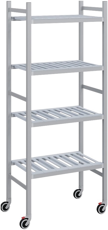 Мобильный cтеллаж-тележка POLAIR LOAD.ME.MOBILE POLY МР18.4.50.12 500х1850х1200 мм используется на предприятиях общественного питания, торговли, пищевых производствах, прачечных и прочих сферах для хранения и транспортировки продукции на кухнях, лабораториях, в холодильных и морозильных камерах. Стеллаж оборудован колесами. Материал каркаса - анодированный алюминиевый профиль, материал полок - полиэтилен ПЭВД.