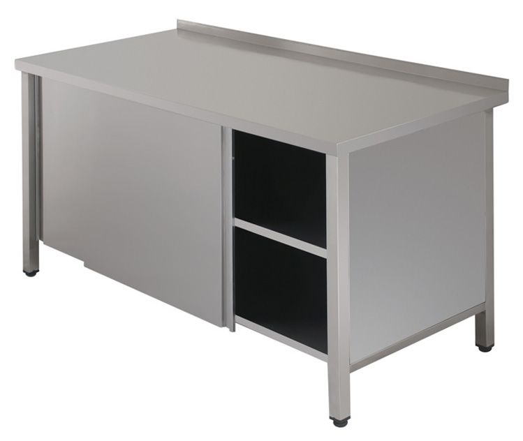 Simeco СЗE1706БК используется на предприятиях общественного питания и торговли для приготовления различных блюд, а так же для хранения посуды и сыпучих продуктов. Модель закрыта с трех сторон. Имеет двери-купе и сплошную полку из нержавеющей стали. Каркас стола выполнен из нержавеющей стали AISI 430, столешница - из нержавеющей стали AISI 430. Ножки - труба 40х40 мм.