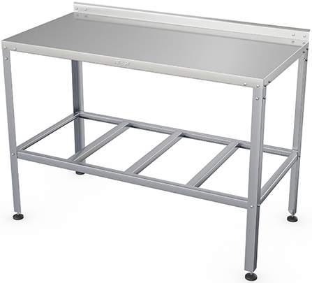 Производственный стол ATESY СР-Б-1-1500.600-02 серии Бюджет предназначен для раскатки теста и обработки ингредиентов на предприятиях общественного питания и торговли. Полка-решетка и каркас выполнены из оцинкованной стали толщиной 1,2 мм, столешница - из нержавеющей стали AISI 430 толщиной 0,8 мм, ножки - из нержавеющей стали, опора ножек - из пластика.